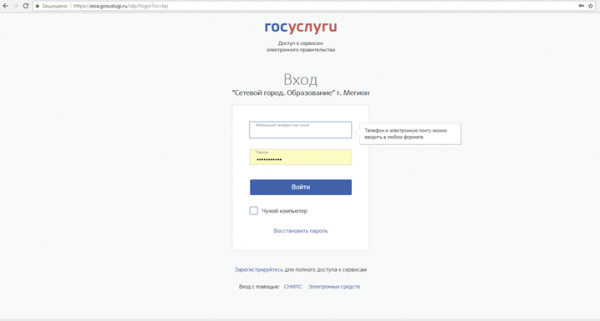 Памятка для входа в "Сетевой город"